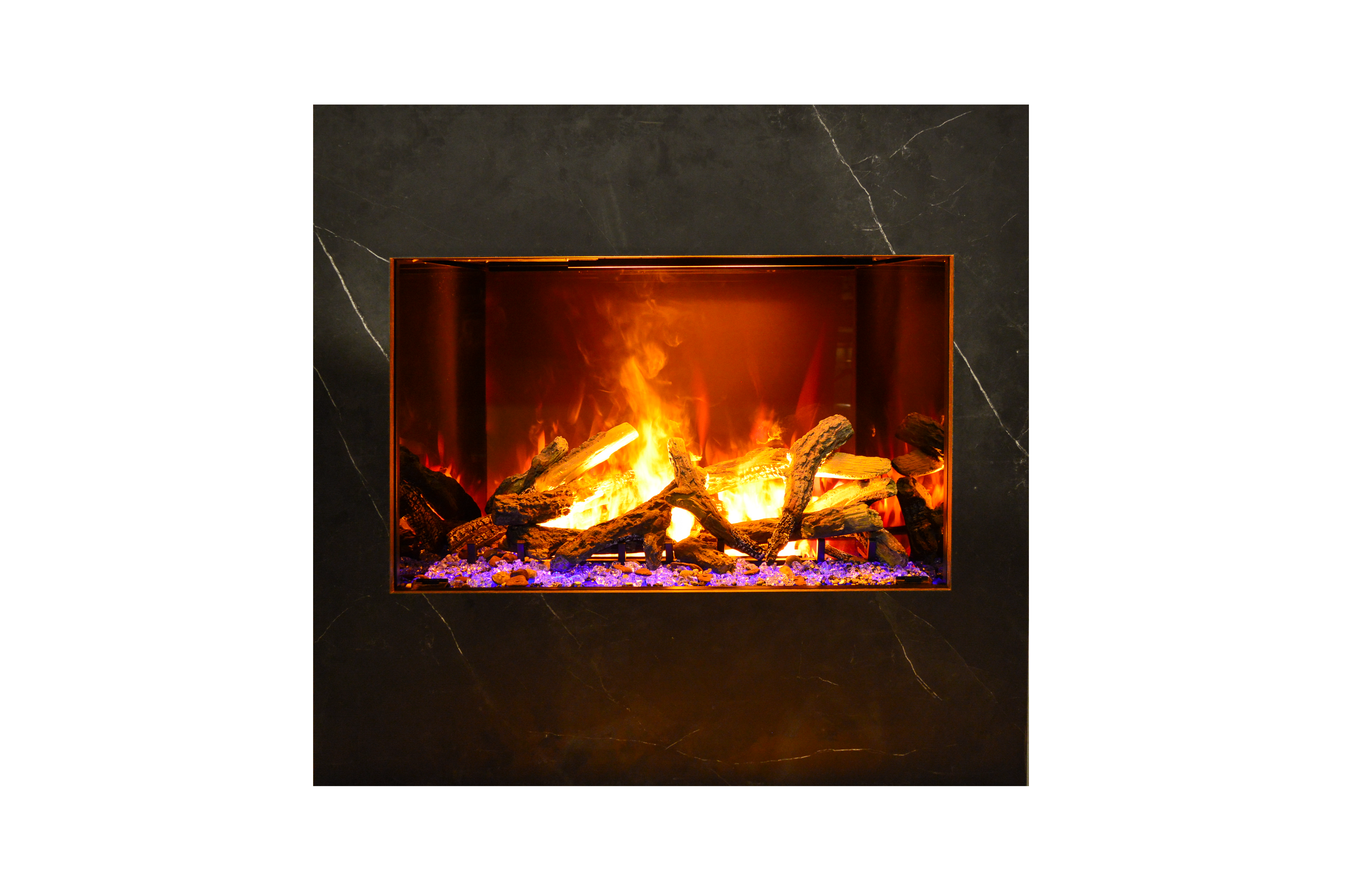 Premium see-through fireplace with customizable BESPOKE features. Perfect for room dividers with dual-sided viewing and advanced flame effects.
